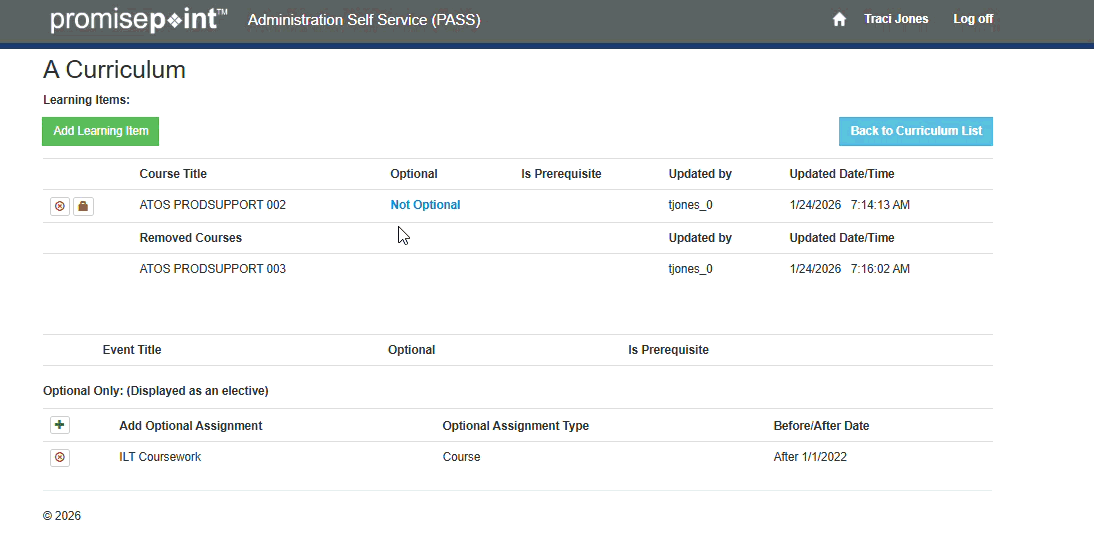 Note: Optional courses when assigned to a curriculum will be processed at 10PM & 5AM MT and added to the users curriculum.